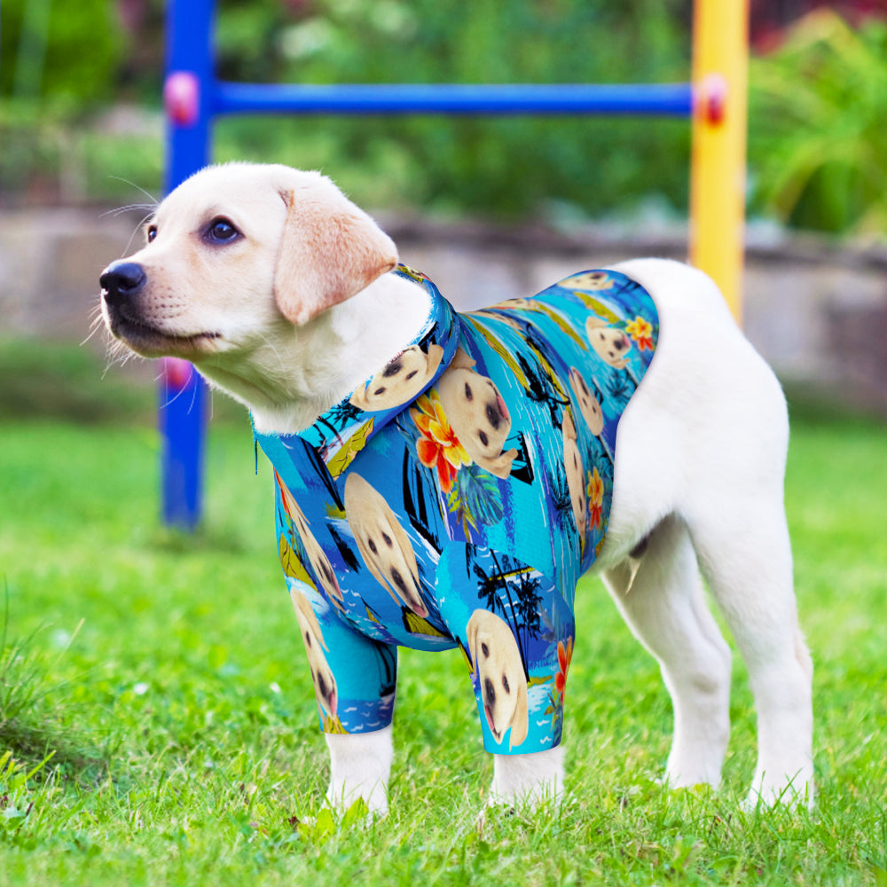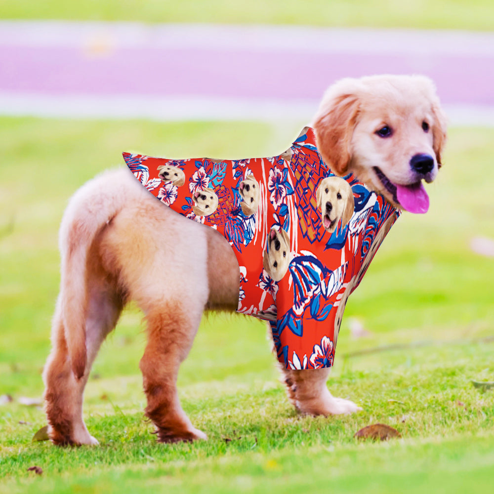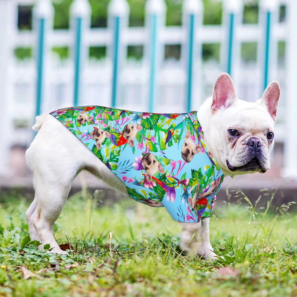 Custom Face Hawaiian Dog Shirt Personalized Dark Green Pet Beach Flowers Shirt Clothes Gift for Pets