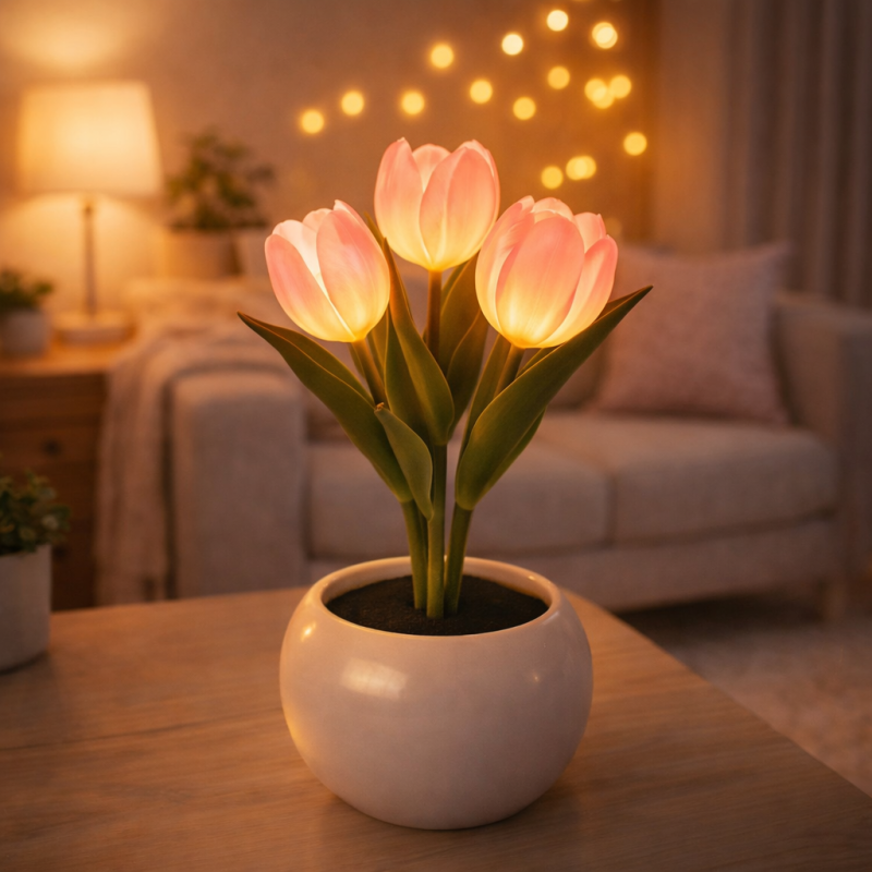 Bring the elegance of blooming tulips into your home with this Creative Tulip Flower LED Table Lamp. Designed like a delicate bouquet, this charming lamp combines soft lighting with floral beauty, turning any space into a warm and relaxing environment.