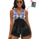 Home / Custom Face Boyfriend Women's Strappy Neck Dress Swimsuit - Blue Grid Surfing Hawaiian Style