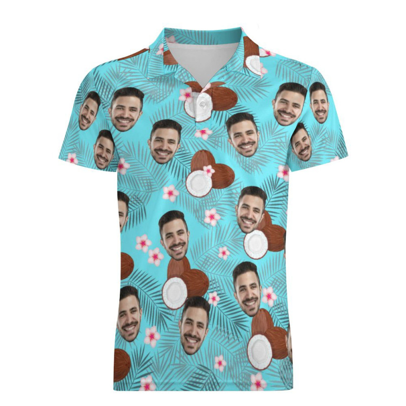 Custom Face Coconut Polo Shirt Men's Personalized Hawaiian Golf Shirts