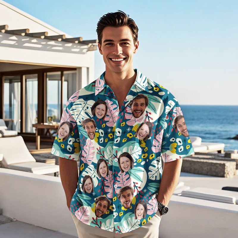 Home / Custom Face Hawaiian Shirt Personalized All Over Print Vacation Tropical Pattern Hawaiian Shirt Gift For Him