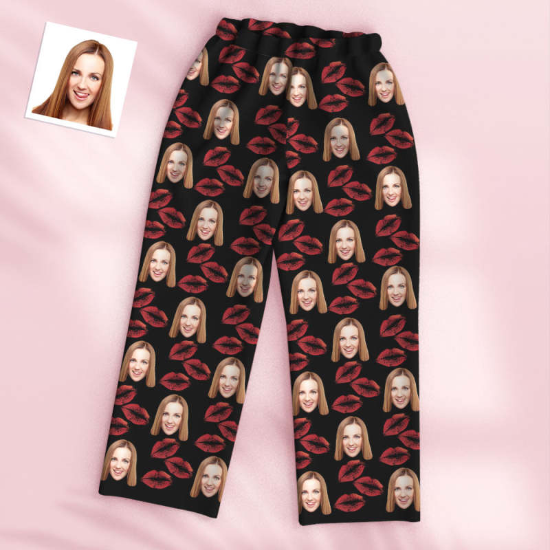 Custom Face Pajamas Personalized Special Love Hearts Women Men Lips Pajama Set