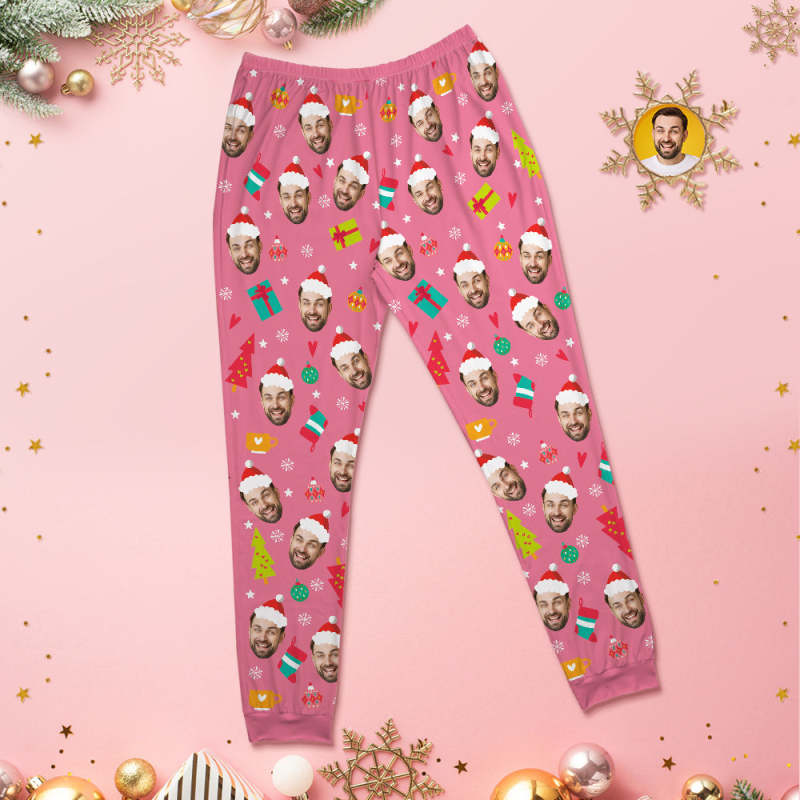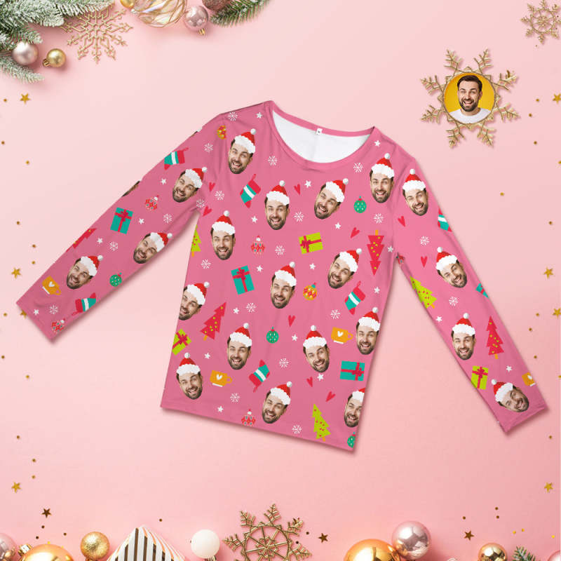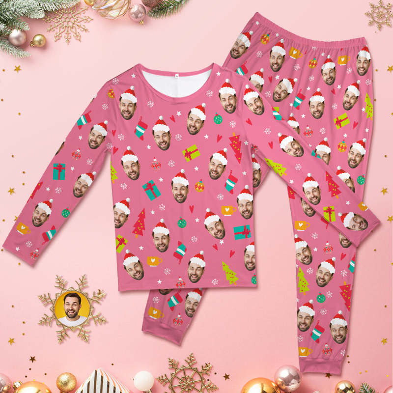 Custom Face Pink Pajamas Personalized Round Neck Funny Christmas Pajamas For Women And Men