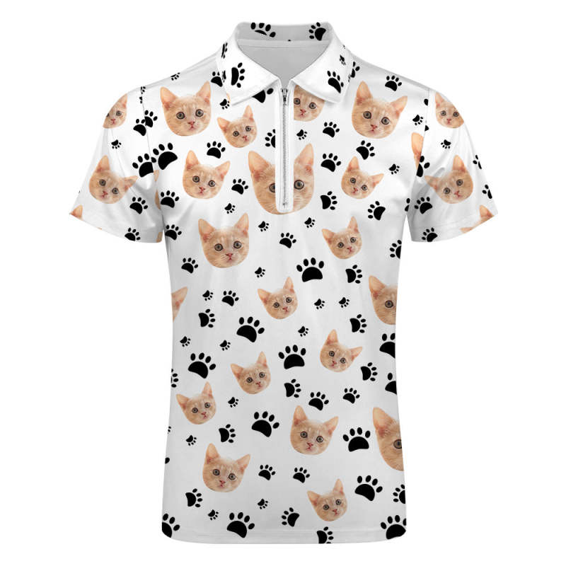 Custom Face Polo Shirt with Zipper Men's Polo Shirt for Pet Lovers