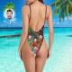 - Deep V neckline, low back and high leg.