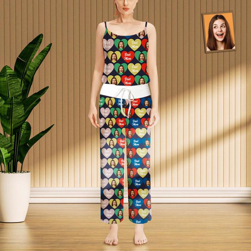 Custom Face Sleepwear Ladies Loose Wide-leg Pants Best Mom Pajama - Colorful Heart