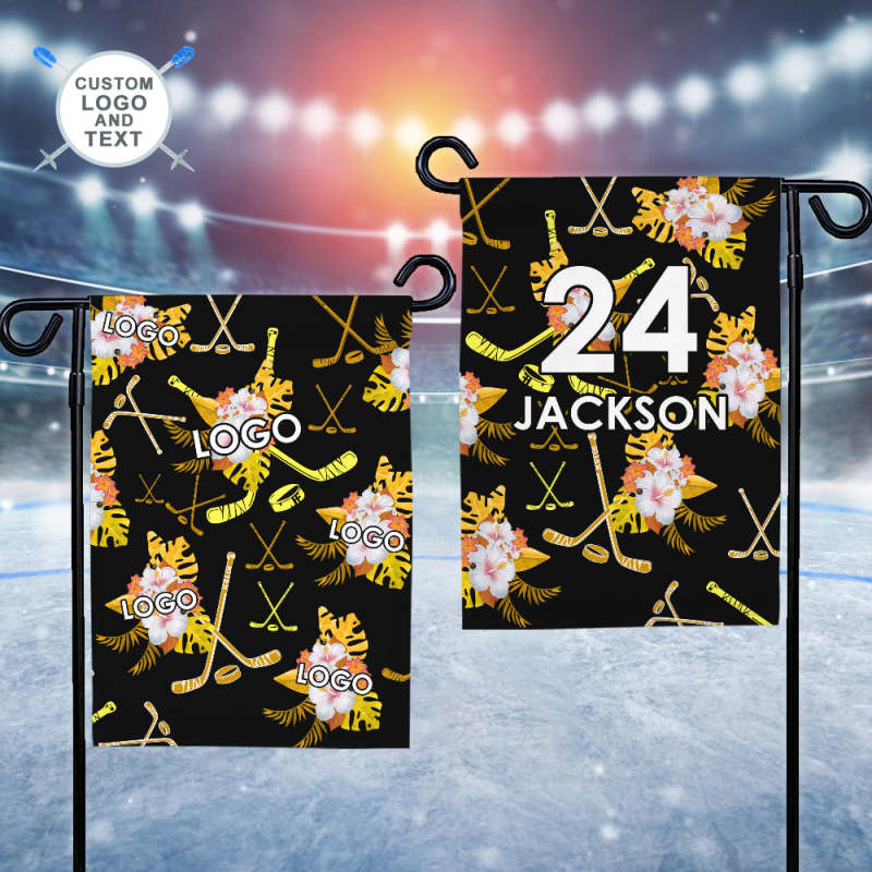Home / Custom Flag Logo and Text Garden Flag Hockey Tropical Black and Yellow Flag
