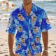 Custom Hawaiian Shirt Blue leaves Personalized Photo Hawaiian Shirt Vacation Party Shirts
