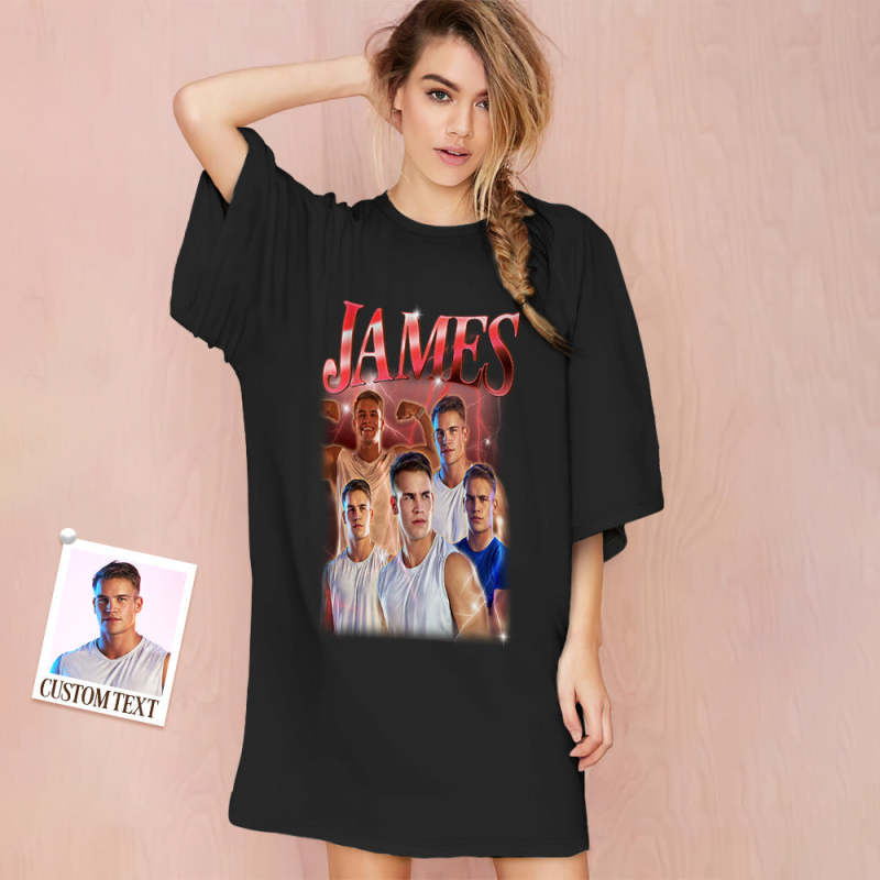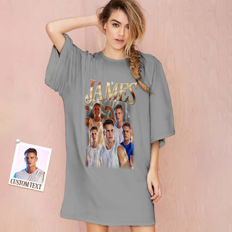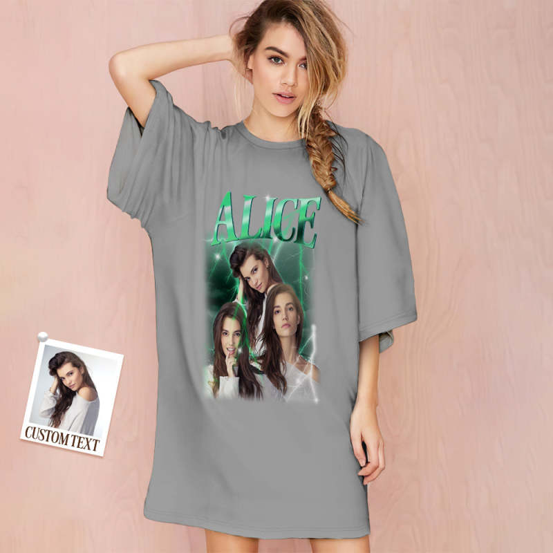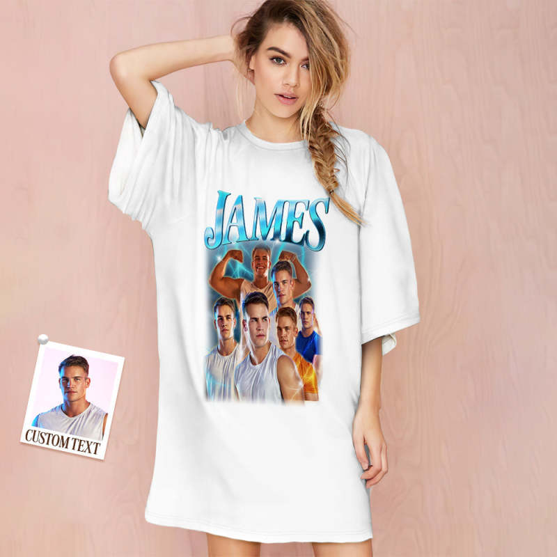 Custom Photo Vintage Nightdress Personalized Name Women's Oversized Colorful Nightshirt Gifts For Women