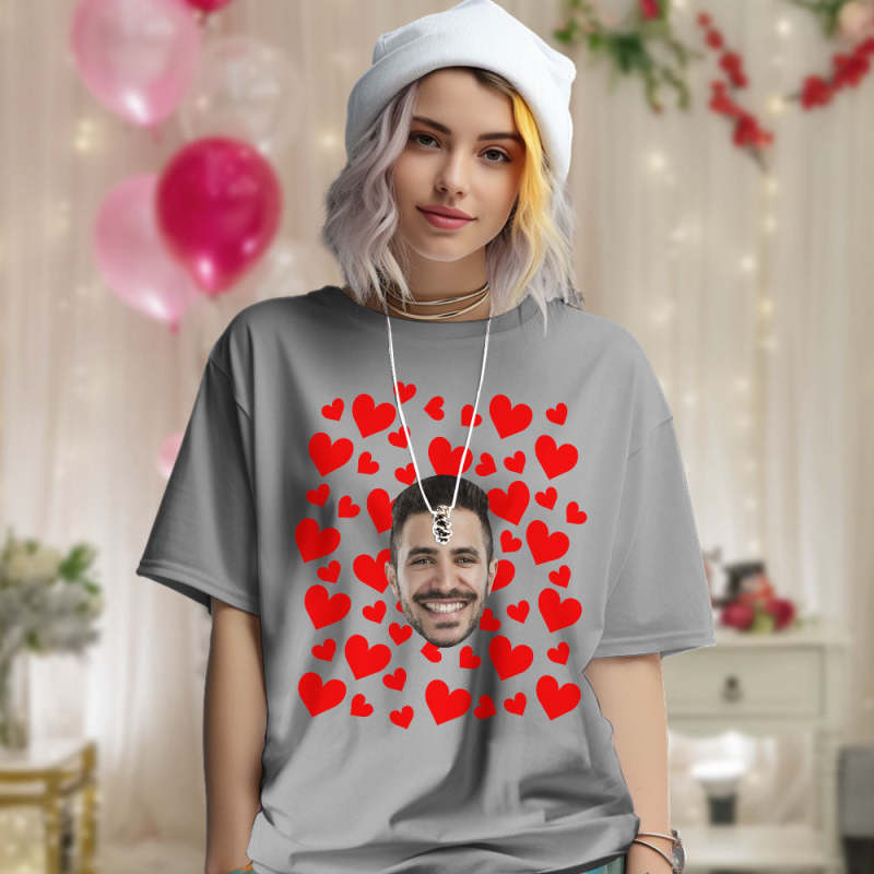 Custom Photo Vintage Tee Personalized Couple T-shirt Red Hearts Valentine's Day Gifts for Couple