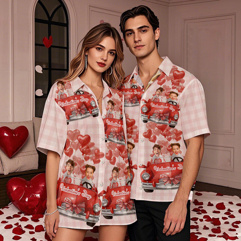 Custom Valentine Hawaiian Shirt Pink Button-down Couple Shirt Gifts