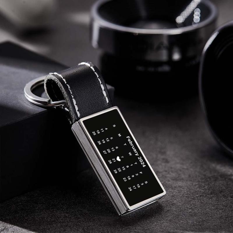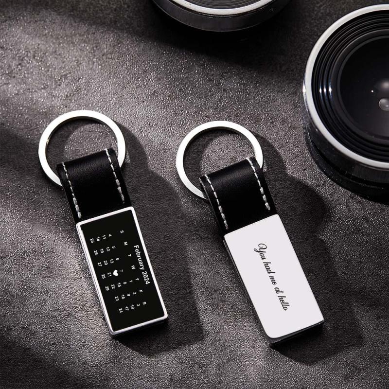 Customized Calendar Date Leather Keychain With Engraved Text Valentine Exclusive Gift For Men