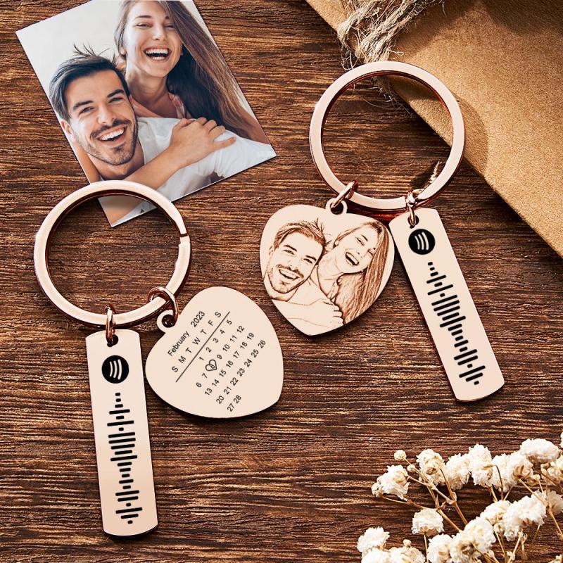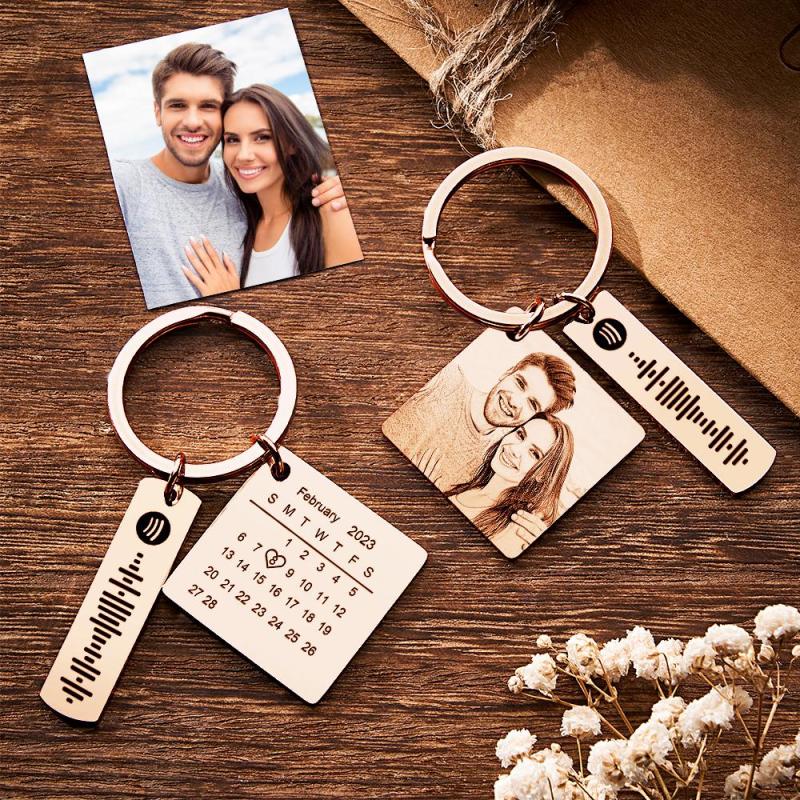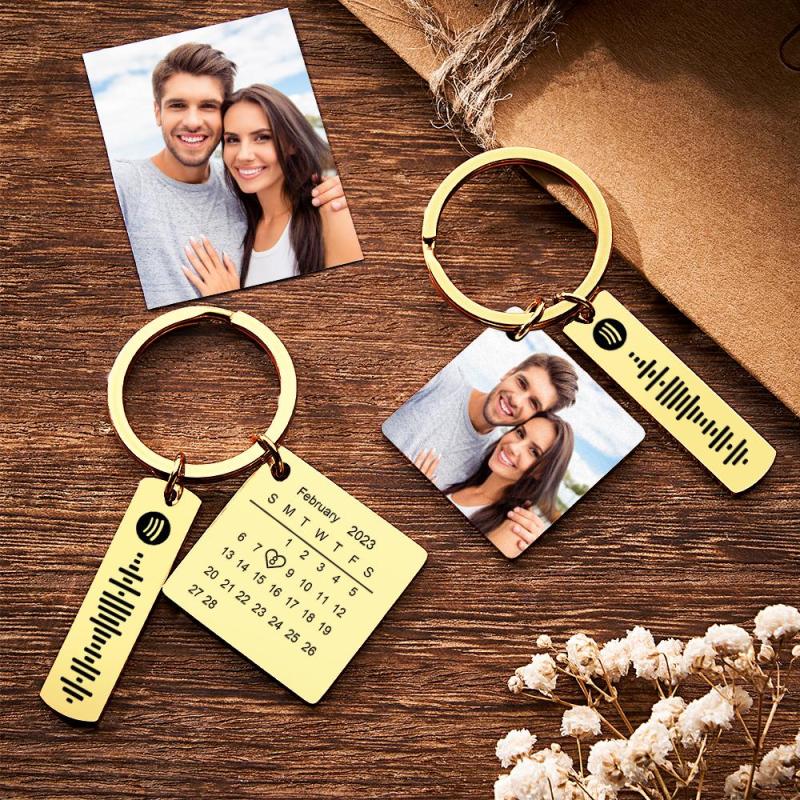 Personalized Calendar Keychain Special Day Significant Photo Heart Square Circle Shape Music Code Metal Keychain Anniversary Gift