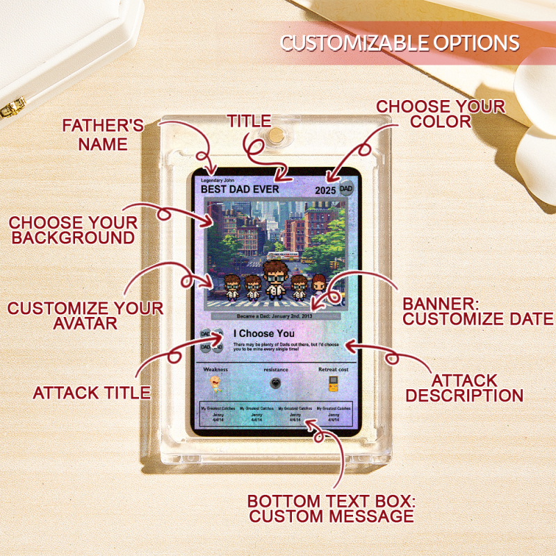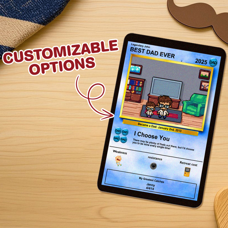 Celebrate Father's Day with this one of a kind custom Poke Card Father's Day card. We will take your picture and turn it into an anime inspired art card. size:W11*H7.3cm
