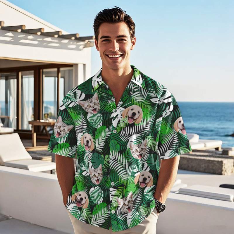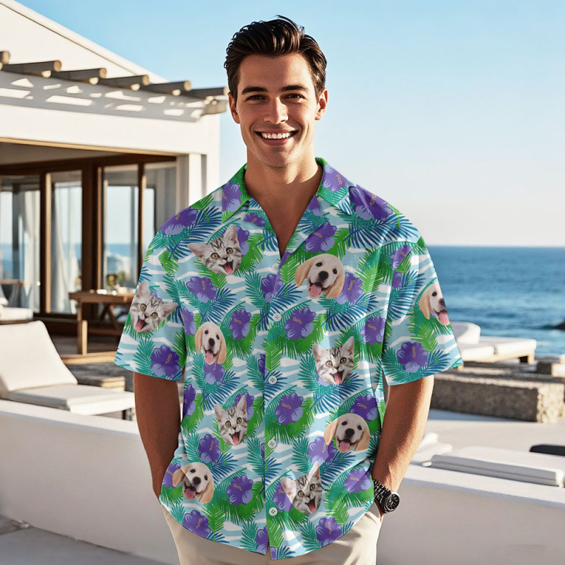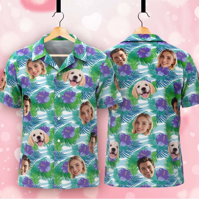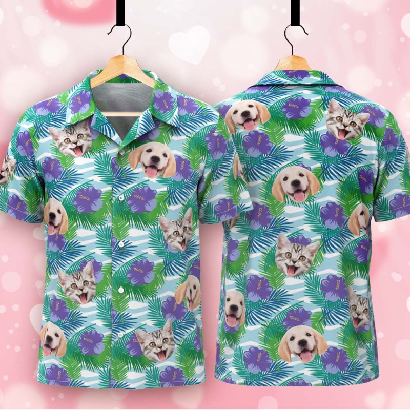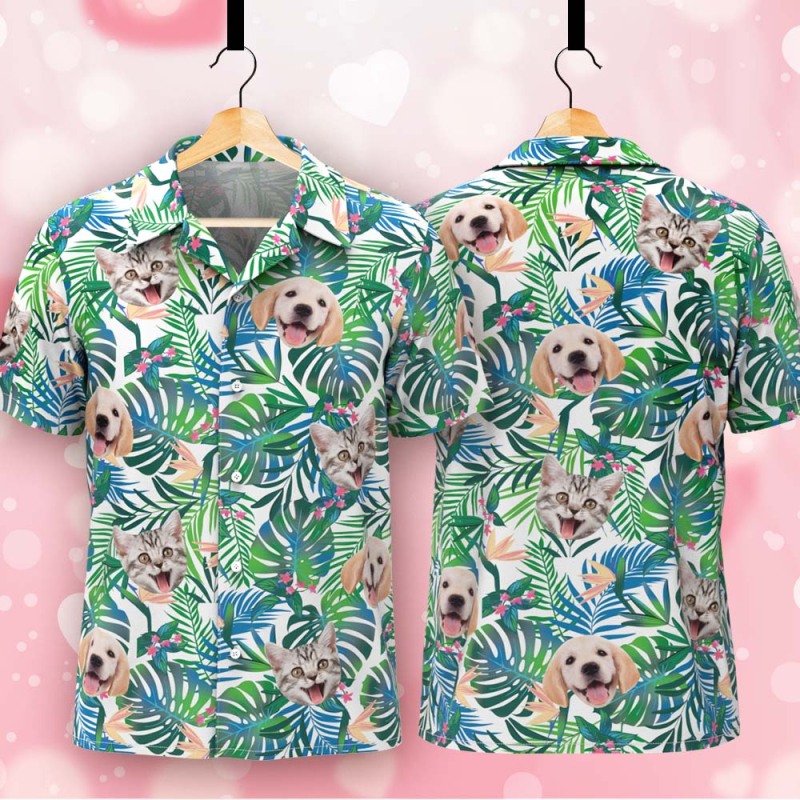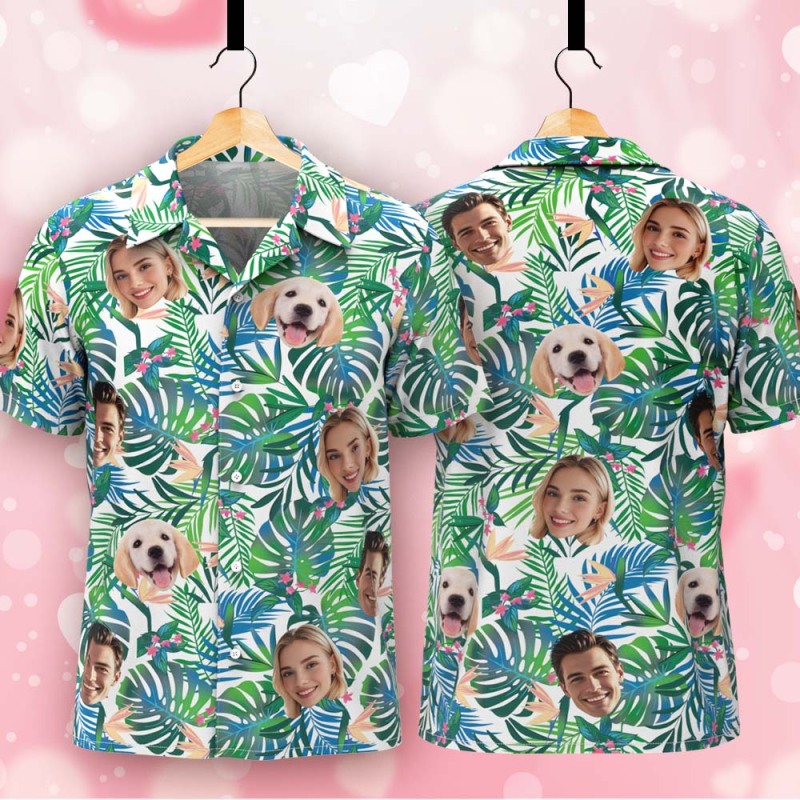 Personalized Tropical Shirt with Dog Face Unique Custom Hawaiian Print Shirt Fun Gift for Him