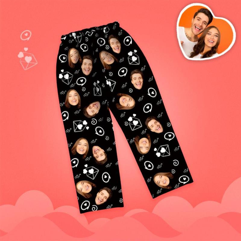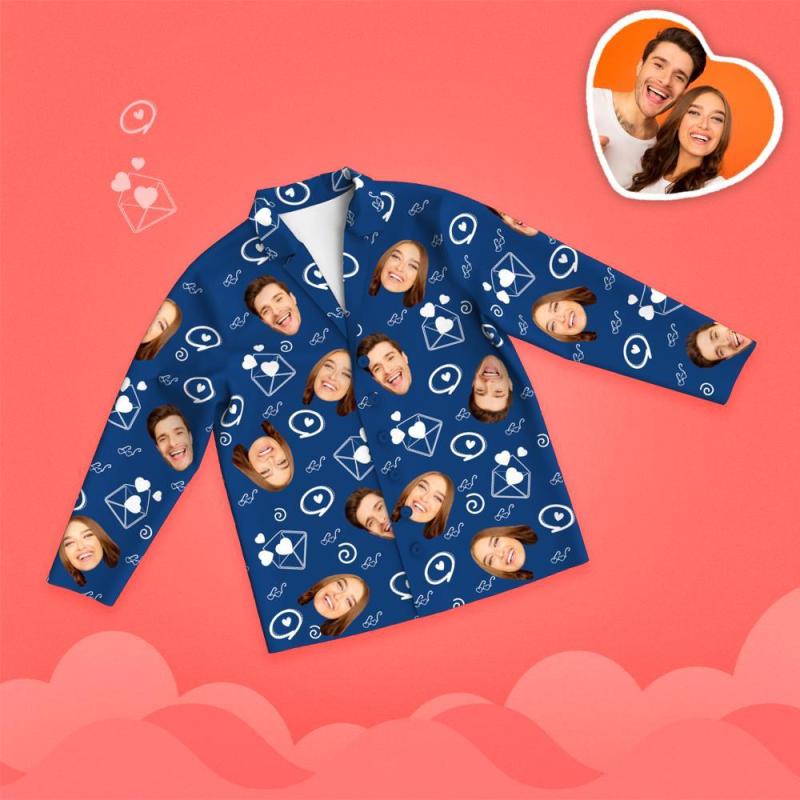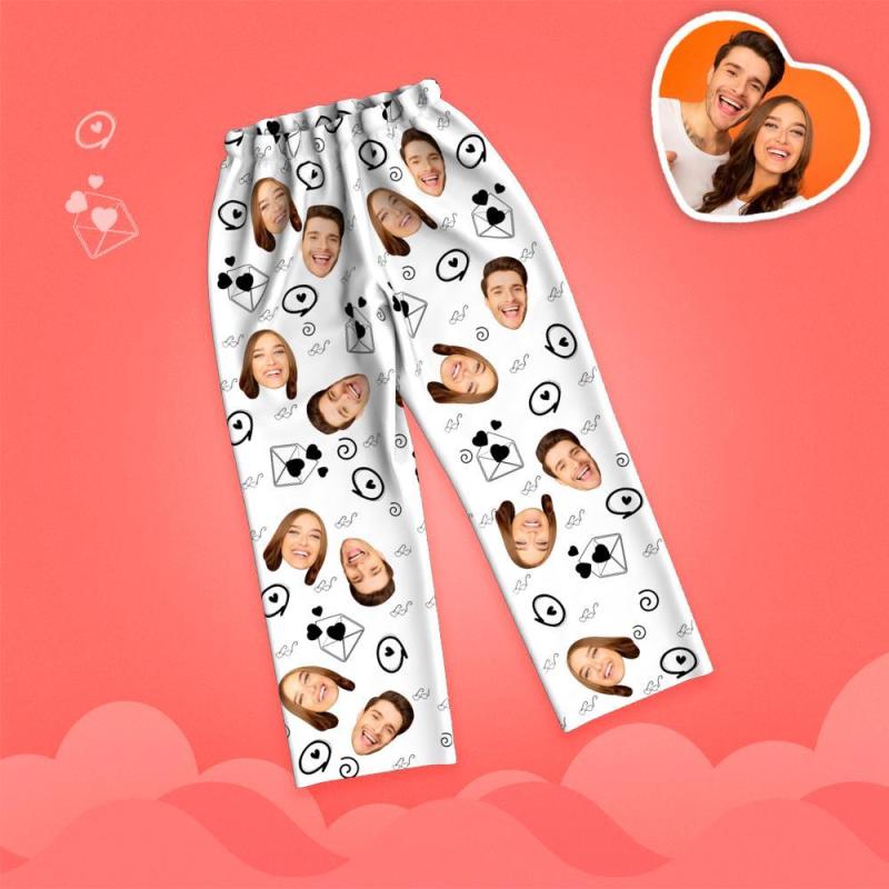 Custom Face Love And Message Printed Long Sleeve Pajamas