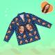 - Matching shirt with notched lapels; button front.