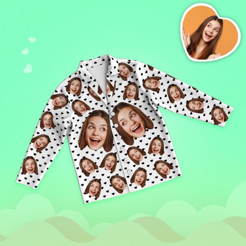 Valentine's Day Custom Face Love Your Heart Printed Long Sleeve Pajamas