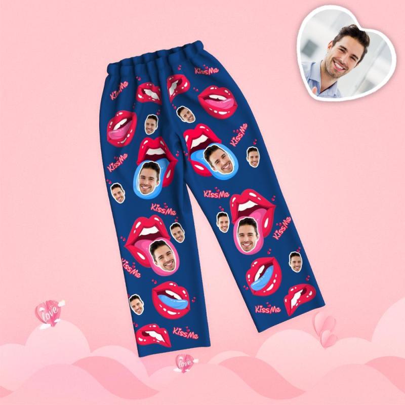 Valentine's Day Custom Face Tongue Kiss Printed Long Sleeve Pajamas