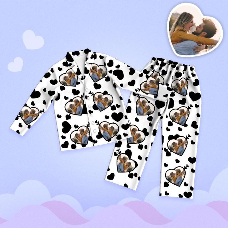 Valentine's Day Custom Photo Cupid's Arrow Printed Long Sleeve Pajamas Set