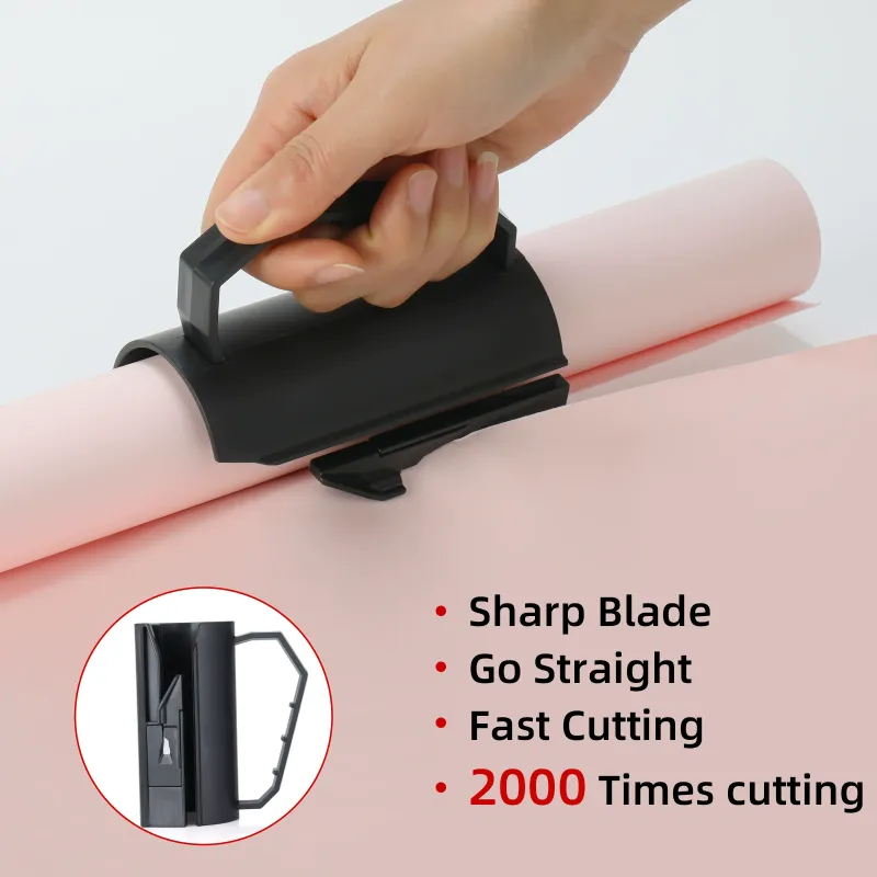 Tear off tape quickly wrapping & cutting- Our wrapping paper cutter design with a handle for packaging paper is suitable for cutting most types of paper, such as kraft paper, thin packaging paper, cellophane, meat paper etc.Especially the cutting tape device on the cutter can quickly tear off the transparent tape,quick stick and packaging of gift boxes and helping you save time during birthday parties and Christmas periods.It can firmly hold the paper roll and make straight cuts. It is much better than scissors as it does not tear the paper and cuts straight,sliding paper cutter handles wrapping paper, vinyl, plastic wrap with sliding cutter, and box tape.