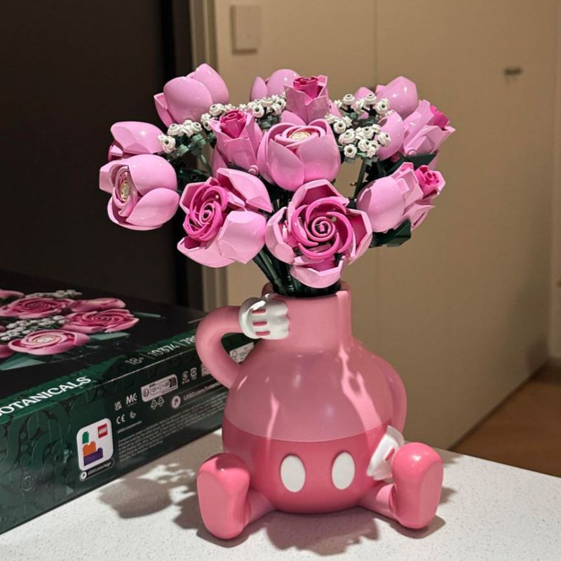 Add a playful touch to your space with this creative rose bouquet made from premium building blocks. The vibrant roses are held by a charming cartoon-style hand stand, making it a fun and eye-catching décor piece for any desk or shelf. A unique, long-lasting gift perfect for anniversaries, Valentine’s Day, birthdays, or simply brightening someone’s day.