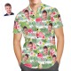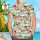 Startseite / Custom Face Hawaiian Shirt Green Stripe and Flamingos Personalized Aloha Beach Shirt for Men