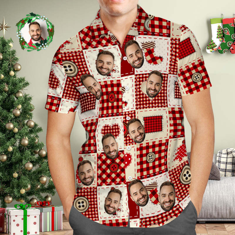 Custom Face Hawaiian Shirt Personalized Photo Christmas Plaid Hawaiian Shirts Christmas Gift for Him