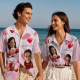 Startseite / Custom Face Hawaiian Shirt Pink Valentine Button-down Shirt Gift For Couple