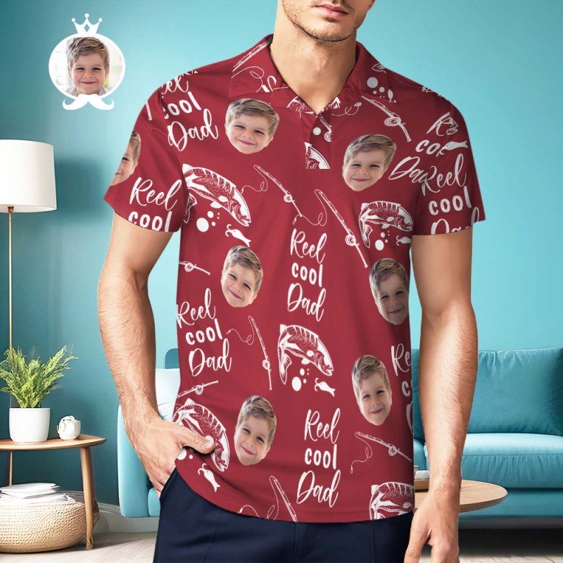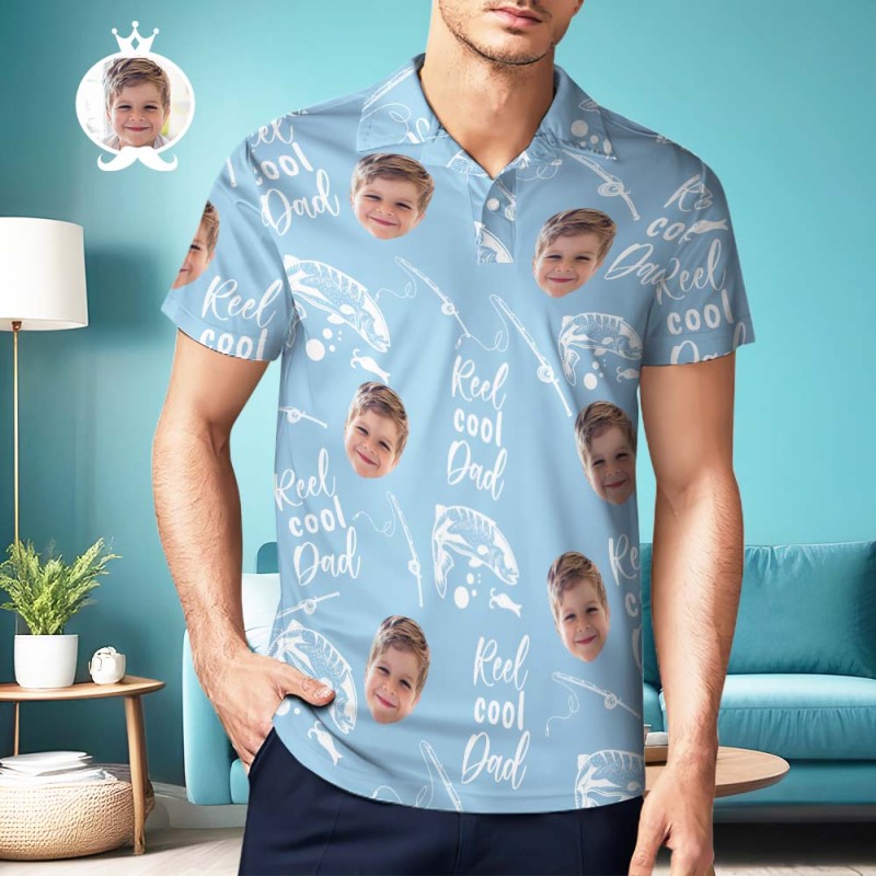 Custom Men's Polo Shirt Personalized Reel Cool Dad Kids Face Polo Shirt For Dad