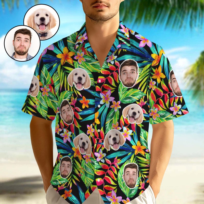 Print Faces/Text/Logos Onto All-over Printed Button-down Hawaiian shirts. Cheer you up or show your love and support for your loved one with your awesome idea. The best custom gifts for your lover, family and friends, and for various holidays.