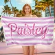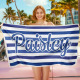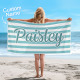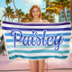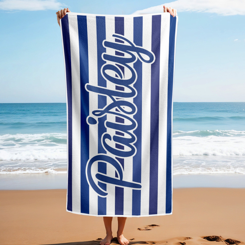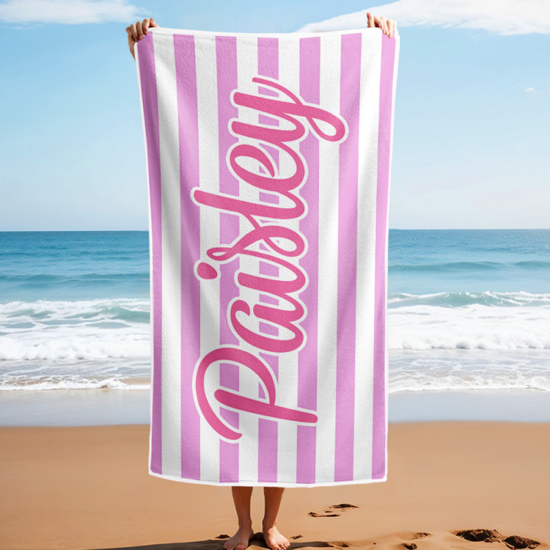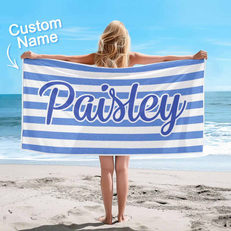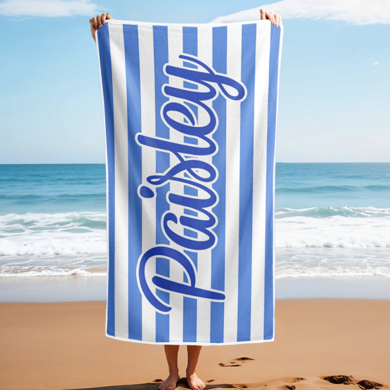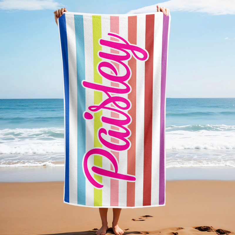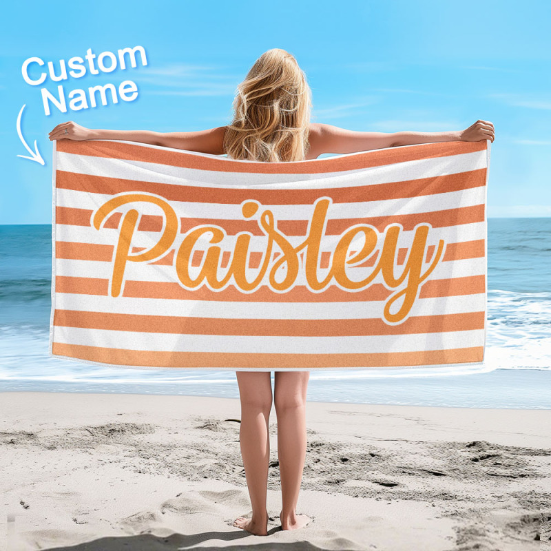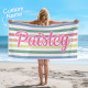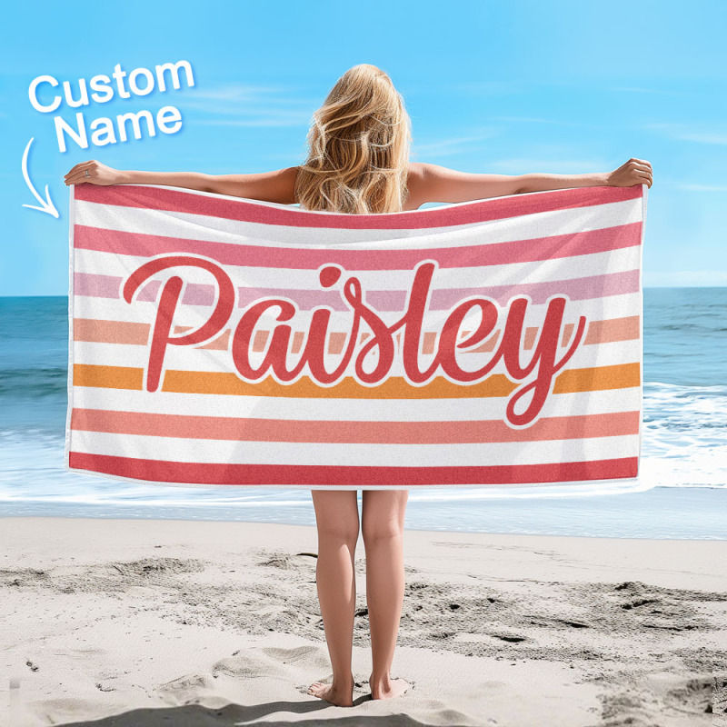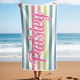 Custom Beach Towel Retro Stripe Style Personalized Name Bath Towel Pool Towel