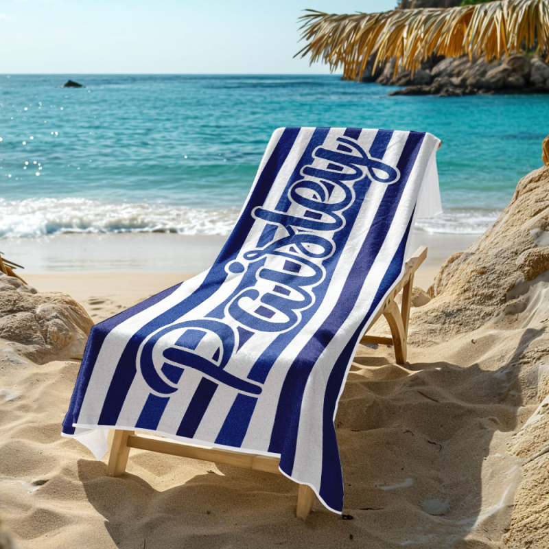Página de inicio / Custom Beach Towel Retro Stripe Style Personalized Name Bath Towel Pool Towel