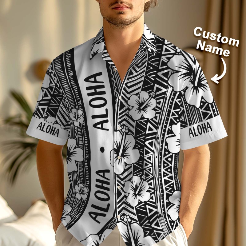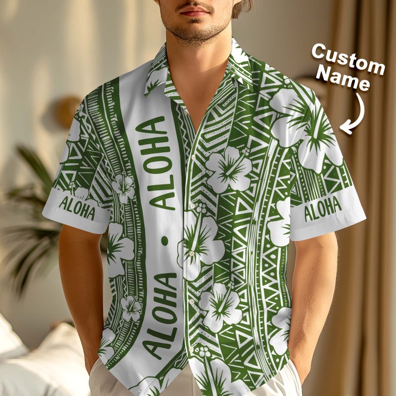 Esta camisa hawaiana cuenta con estampado, cierre de botones y mangas cortas.