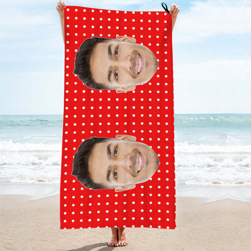 Página de inicio / Toalla de playa personalizada con cara y lunares, toalla de playa con foto, regalo divertido