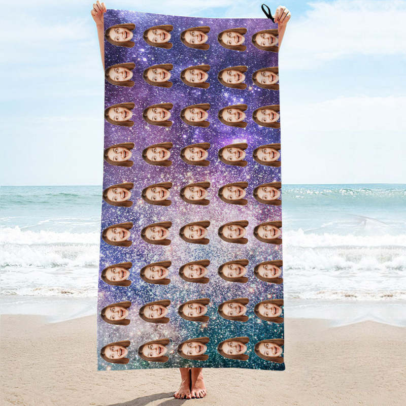 Página de inicio / Toallas de playa personalizadas con caras personalizadas de cielo estrellado, toalla de playa con foto, regalo divertido