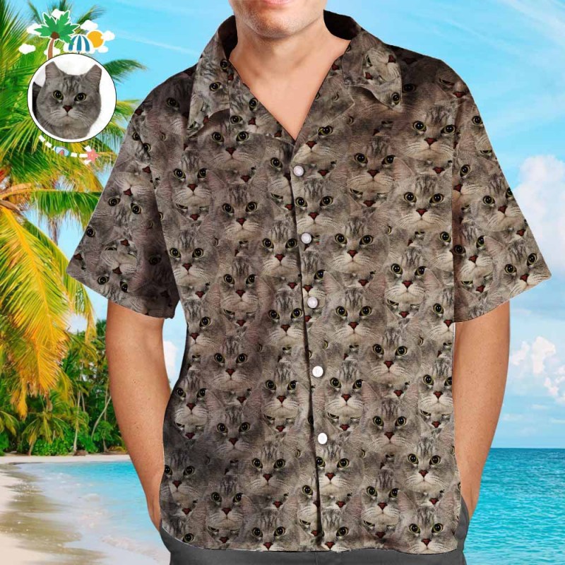 Camisa hawaiana personalizada con cara de mascota para hombre, camisa hawaiana de impresión total.