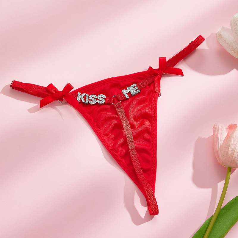 Página de inicio / Custom Rhinestone Letter Thong Personalized Bow Tie Sexy Thong