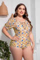 Página de inicio / Bañador de una pieza de talla grande con estampado floral, de manga corta, con espalda descubierta y braguitas.