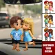 Personalized Acrylic Car Hanger - Cute Couple Kissing Moment - Custom Name Gift for Boyfriend & Girlfriend