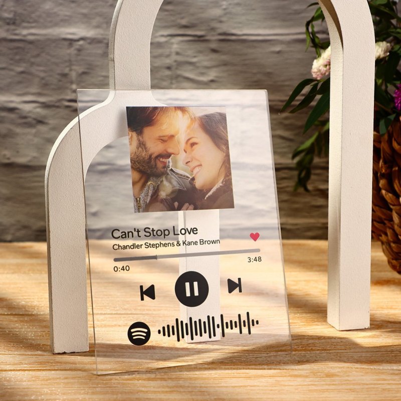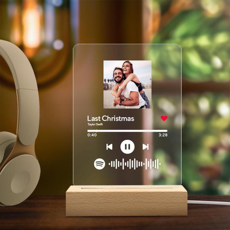 Ingresa el nombre de tu canción favorita, el nombre del artista o sube cualquier foto para finalizar tu diseño. Puedes usar la aplicación Spitfy para escanear el código en tu teléfono inteligente, y luego tu canción personalizada comenzará a sonar de inmediato. Es una gran idea de regalo y uno de los regalos de moda más populares que puedes encontrar.