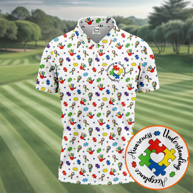 Accueil / Awareness Understanding Acceptance Autism White Golf Shirt, Autism Awareness Colors Golf Shirts For Men