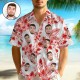 Custom Face Hawaiian Shirts Red Flower Leaves Button-down Shirts Personalized Men Shirts
