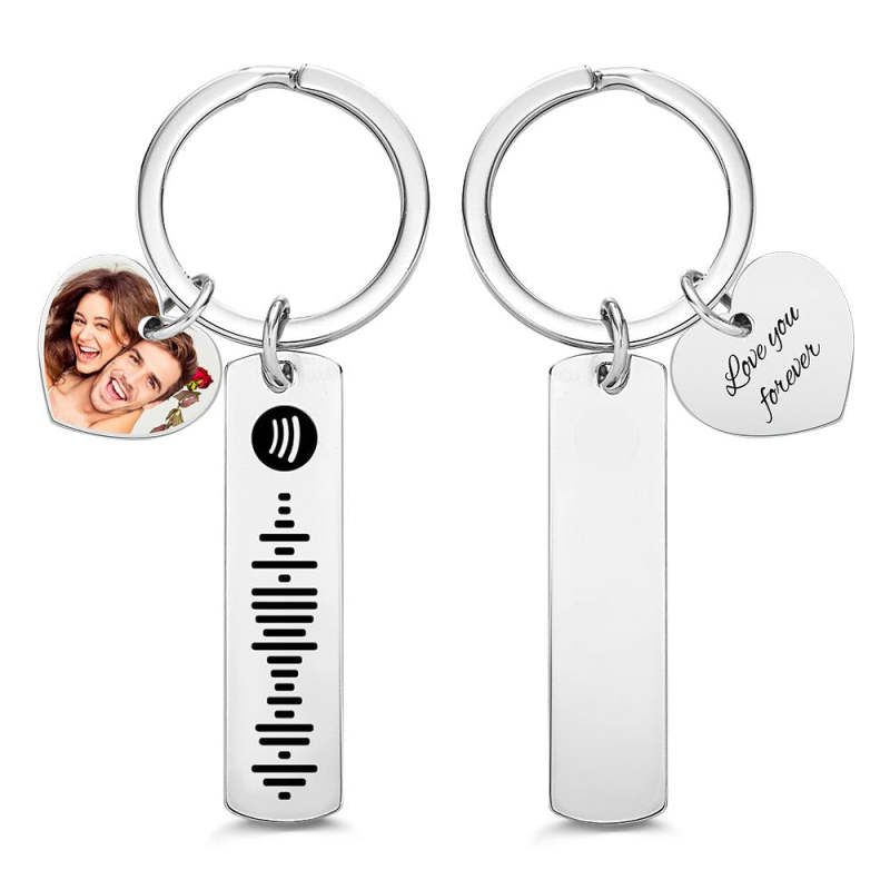 This unique keychain is the best perfect gift for him/her at Christmas. Custom the Spotify code keychain, choose any song title, artist name, and favorite photos you want, all can be imprinted on the plaque, and you can generate a unique Spotify code. Please note that the plaque itself does not emit music. You have to scan the code on the Spotify app, after scanning the code on Spotify, your song will start playing immediately.