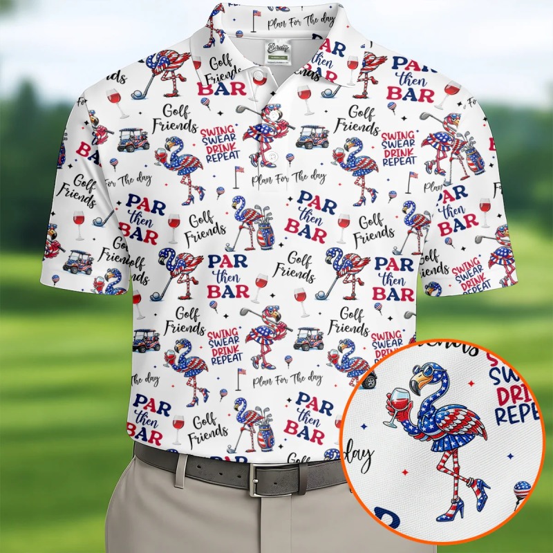 Par Then Bar Flamingo Funny Womens Golf Polo Shirt, Custom Ladies Golf Shirt