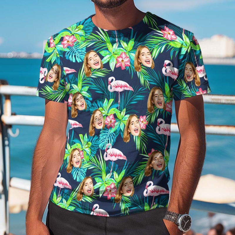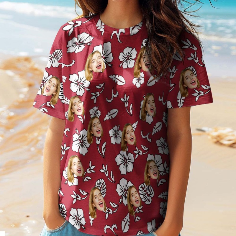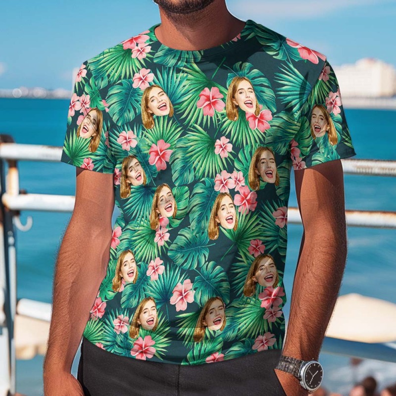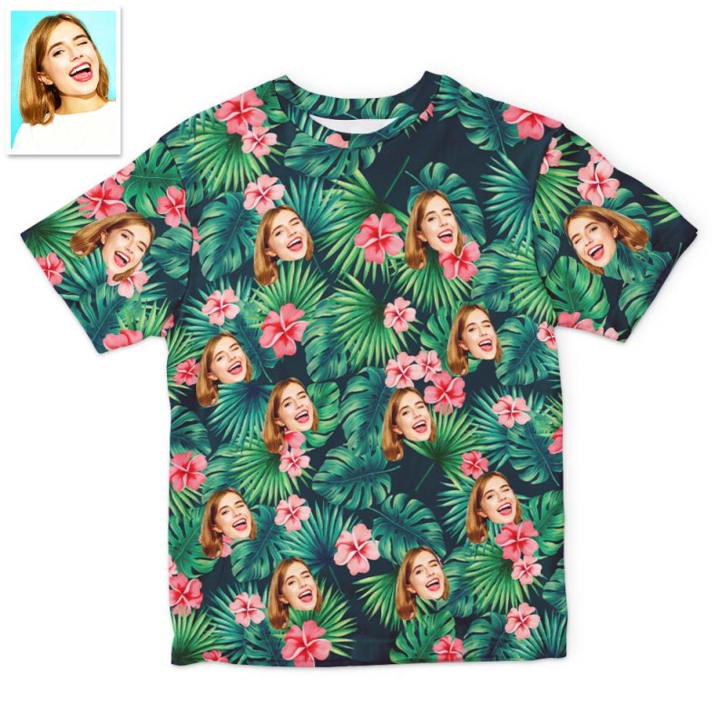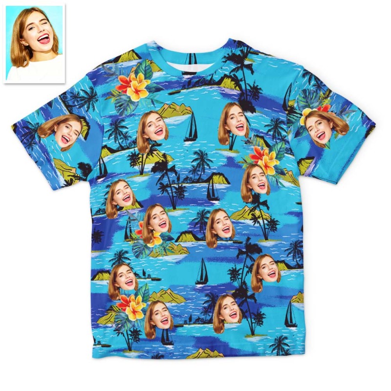 Accueil / Unisex Couple Hawaiian Style T-shirt Custom Face T-Shirts Fully printed 5 Colors Available