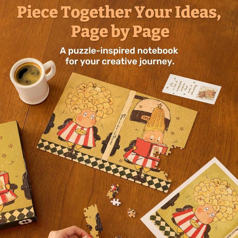 Puzzle Book Cover: This A5 notebook features a cover of 329 plastic puzzle pieces, offering sturdy protection and a fun way to hold your ideas. Allowing your personal style to shine and making your notebook truly stand out.