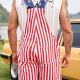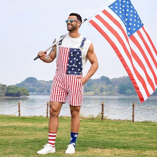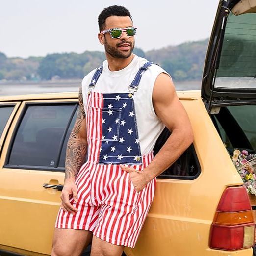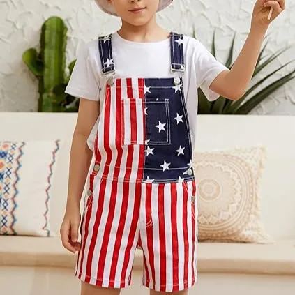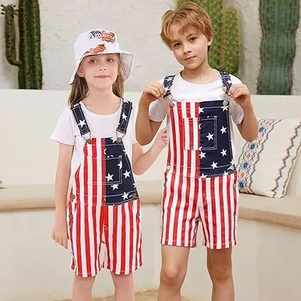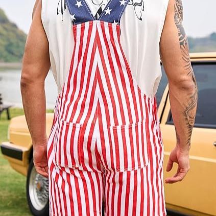 Turn heads this Independence Day with these eye-catching American Flag Overalls! Featuring bold red and white stripes and a star-spangled blue chest pocket, these patriotic bib shorts are perfect for 4th of July parties, BBQs, music festivals, and more. Made with lightweight, breathable fabric and adjustable straps for a comfortable fit all day long. Whether you're grilling, dancing, or just chilling – do it in true American style