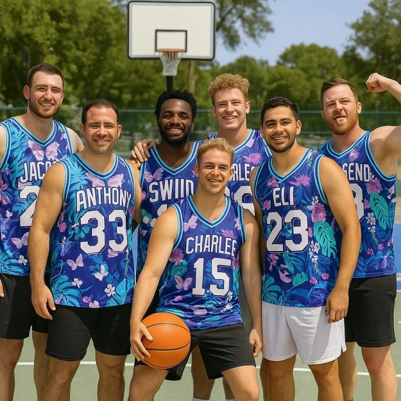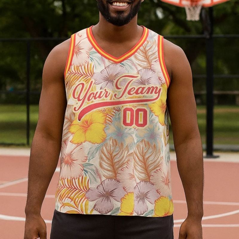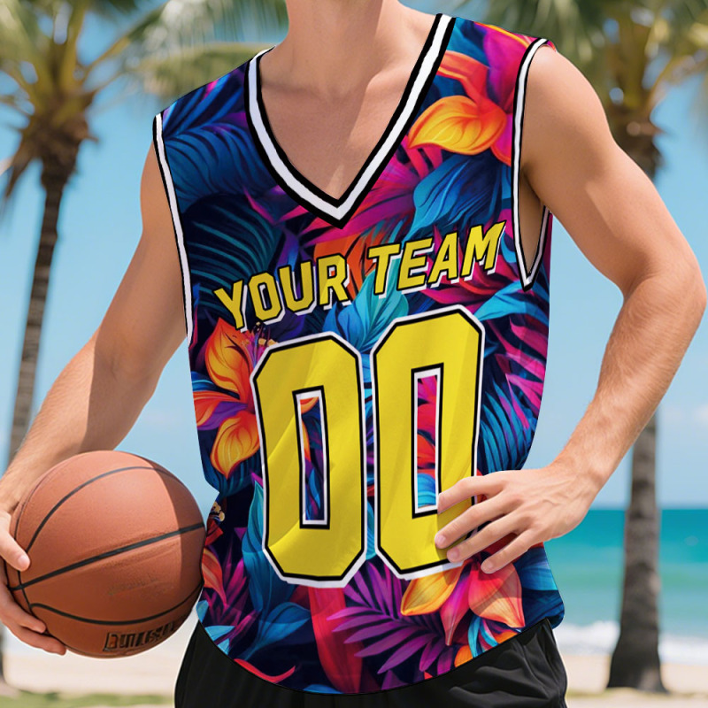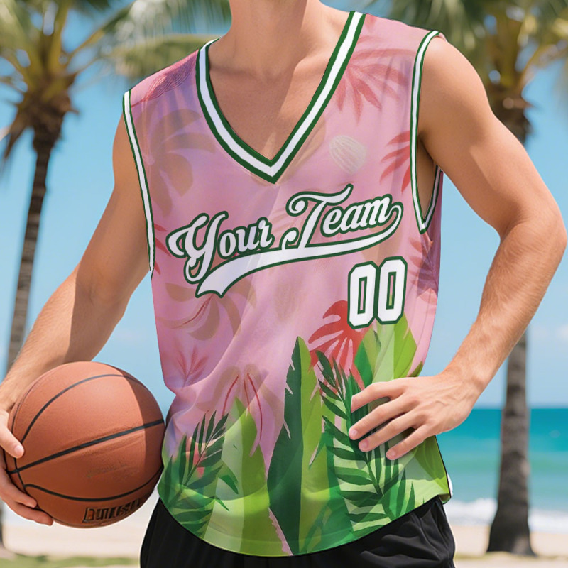 Custom Basketball Jersey Tropical Beach Theme Custom V Shape Shirt with Name & Number