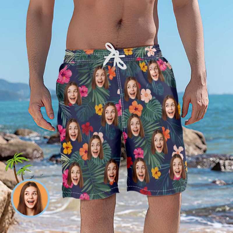 Custom Beach Short with Face Personalized Photo Swim Trunks for Men
